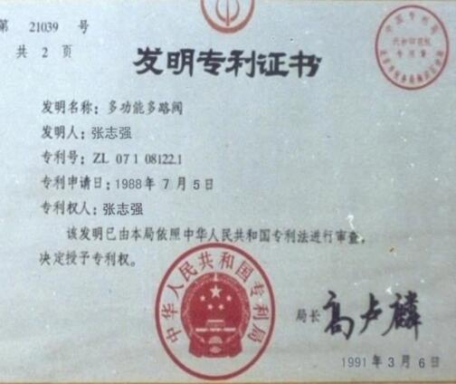| 祝賀海龍王公司生產(chǎn)的平面閥獲得國家專利 |